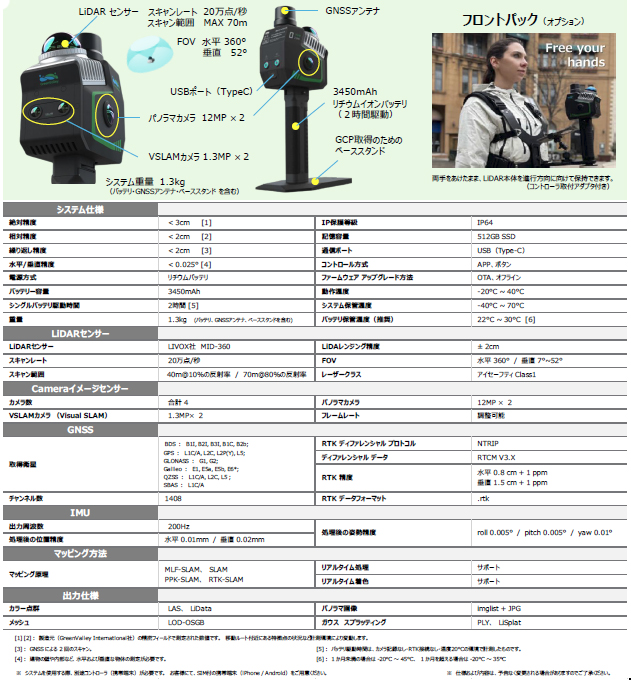 ■ 最新 GNSS付きSLAM LiDAR ハンディスキャナ | ||||||||||||||||||||||